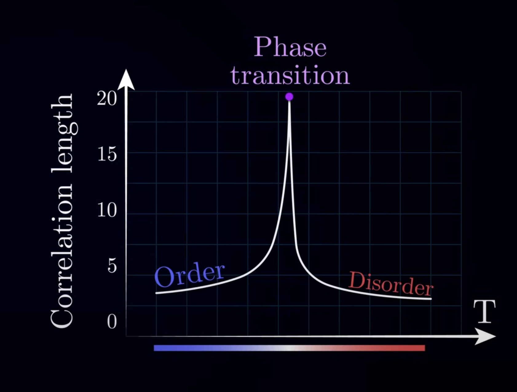 相变时的相关距离长度最高(from 油管视频)
