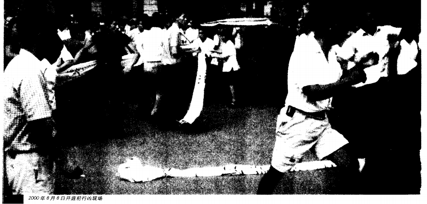 2000年8月8日开庭前行凶现场(图片来源于《民主与法制》)