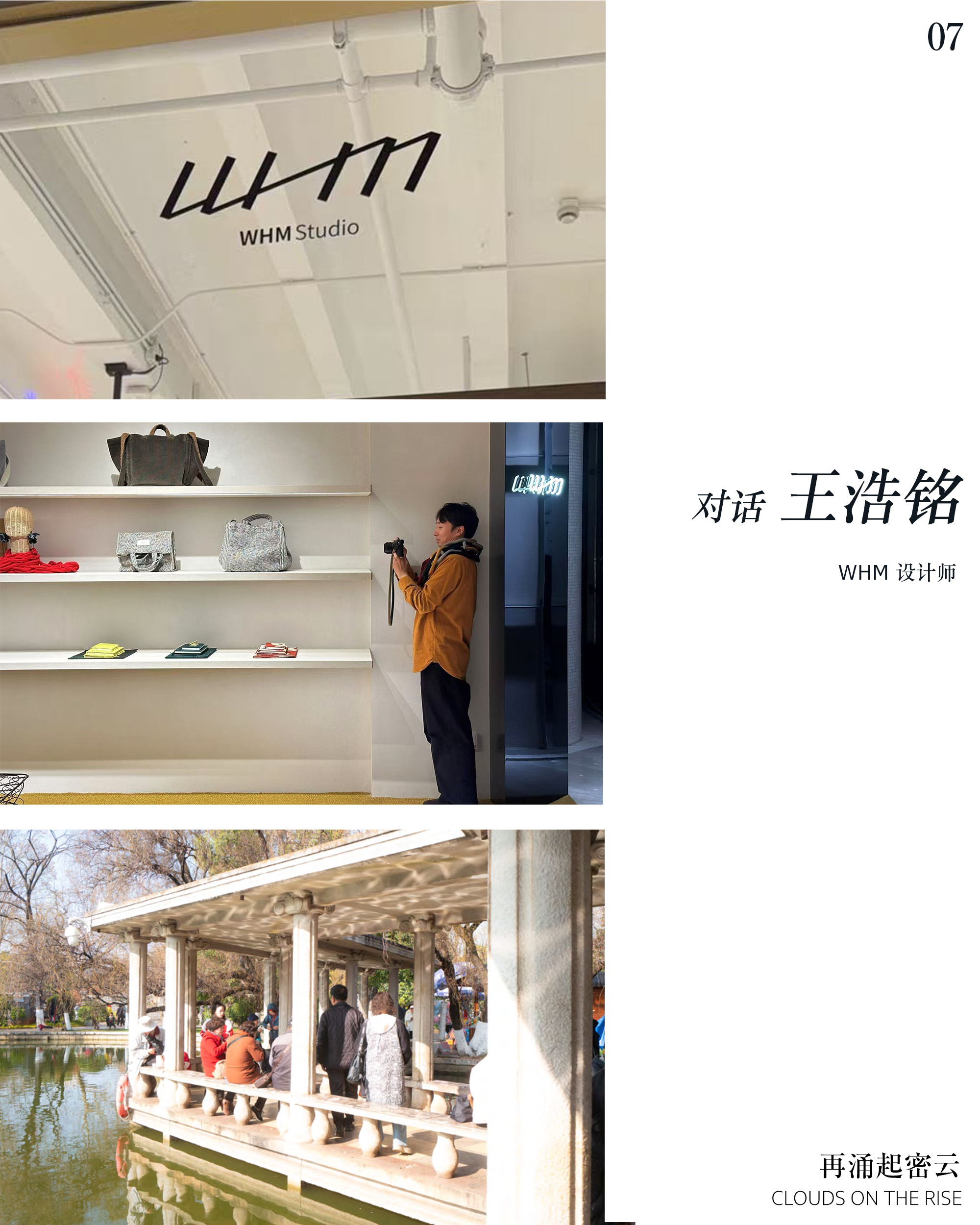 王浩铭毫不避讳地说,自己是个自由散漫的人。连同他的同名设计品牌WHM,也是一个跟他一样,有点“自由散漫”、寻常之外的随性基因在身。比如,你可以在标志性的WHM衣橱里,发现非常多延展了生活中一些微妙意外的“小美”细节:几种回溯东方感童年记忆的小小印花,以及比基础款再多些“氛围”遐想的日常之选,或者是既允许抒发文艺心绪,又能满足使用需求的长期实用款担当;也包括他那些直抒胸臆的系列随笔、自发投入的摄影兴趣,和专注于发掘真实需求的灵感。吸引眼球的“宏大又耀眼”之作总会在瞬间占据热度和话题,但“小美”背后,支撑品牌的专注、细腻和品质感,往往回味悠长,更深入人心。就像我说WHM的衣服是设计师尊重了日常之美后,加以独立思考的产物,但更重要的,满足这一条件的前提是一个人的眼睛要真正地深入生活。他看到了什么,便自发自然地去赞美他所看到的。