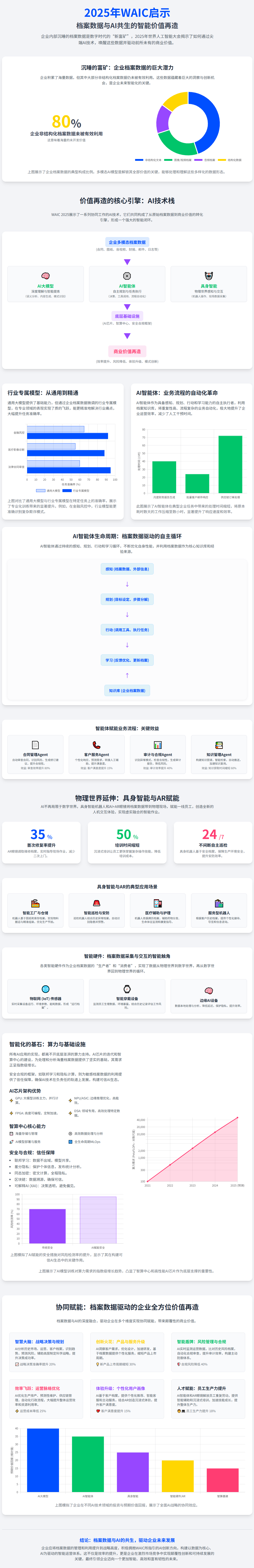 但传统模式下,这些 “矿石” 往往只停留在 “存储” 和 “查阅” 的层面,就像深埋地下的宝藏,其真正价值远未被挖掘。而 2025 年 WAIC 展示的 AI 技术,正像一套精密的 “采矿装备”,能让这些档案数据从 “沉睡” 到 “觉醒”,实现从 “记录” 到 “洞察”“预测” 乃至 “智能决策” 的飞跃,完成一场颠覆性的价值再造。