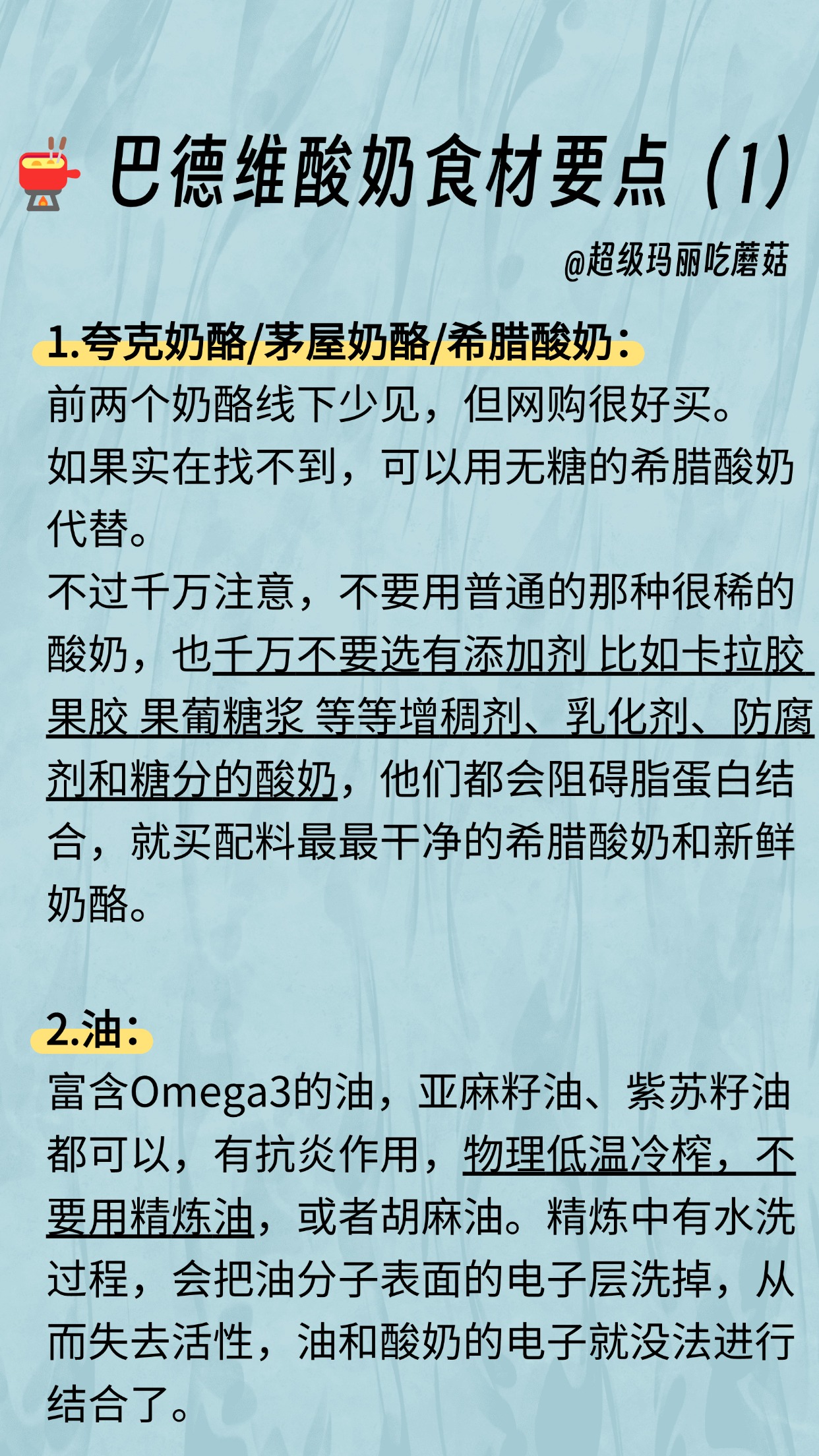 本期深度解析德国巴德维疗法的核心配方——巴德维酸奶(亚麻籽油/紫苏籽油+奶酪/希腊酸奶+亚麻籽粉),其作用是增强细胞对氧气的吸收和利用,改善血液质量,帮助排出代谢废物。