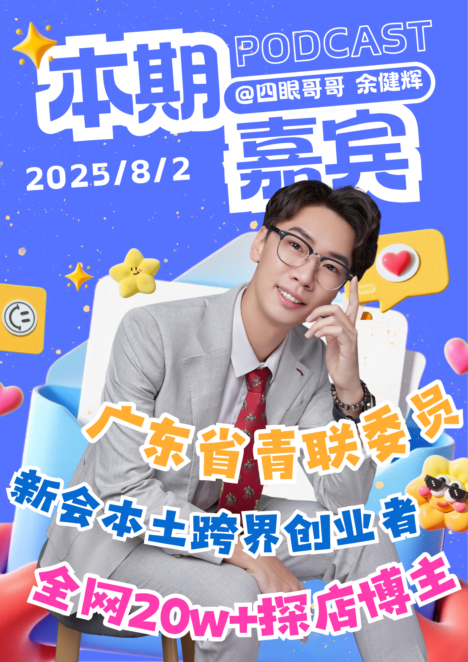 今天我们邀请到一位在 "不按常理" 中走出独特轨迹的嘉宾 —— 四眼哥哥(余建辉)。他是江门新会本土成长的 "斜杠青年":从放弃高中读技校的叛逆者,到坚持 20 年的义工联骨干;从被扔瓶子的青涩主持人,到承包大小活动的金牌主持;从麦当劳扫厕所的实习生,到运营网球馆、牛杂店的跨界创业者。