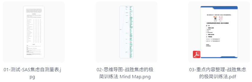 关于SAS焦虑自测量表及说明、本书的思维导图和本书的重点内容整理,链接如下,欢迎自取: