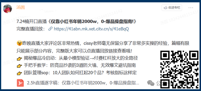 我们本次的直播并没有只局限在组织管理上,还有非常多精彩深度的内容,不仅拆解了从选品到转化的全链路逻辑,还分享了团队搭建、避坑指南等核心干货!
