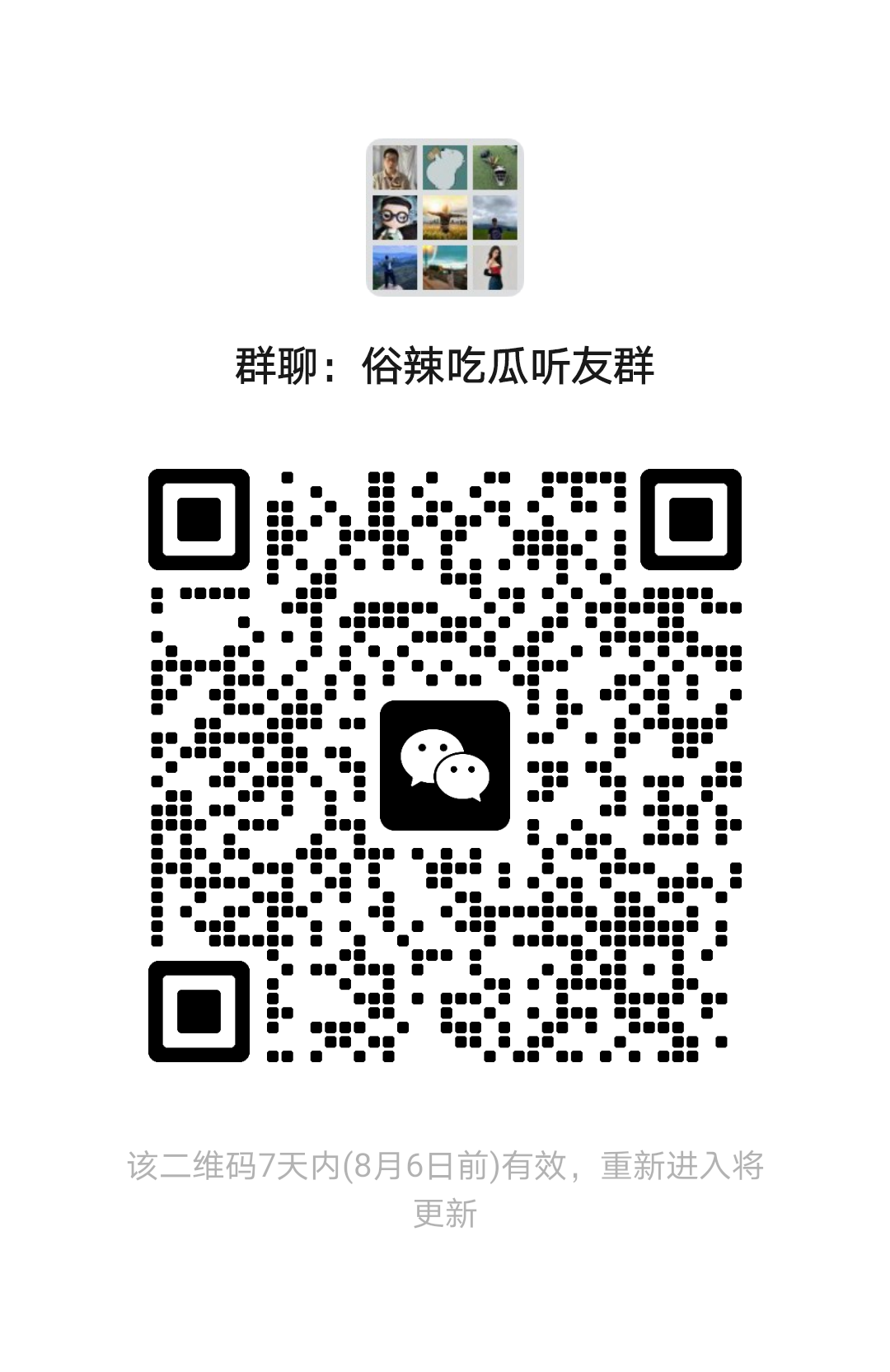 欢迎各位听友给我们的节目留言和我们互动,也请大家把本期内容分享给你的好友,让更多人喜爱《怪痰》(《俗辣吃瓜》),是我们最大的动力!更多互动可以扫描下方二维码,进群聊天!