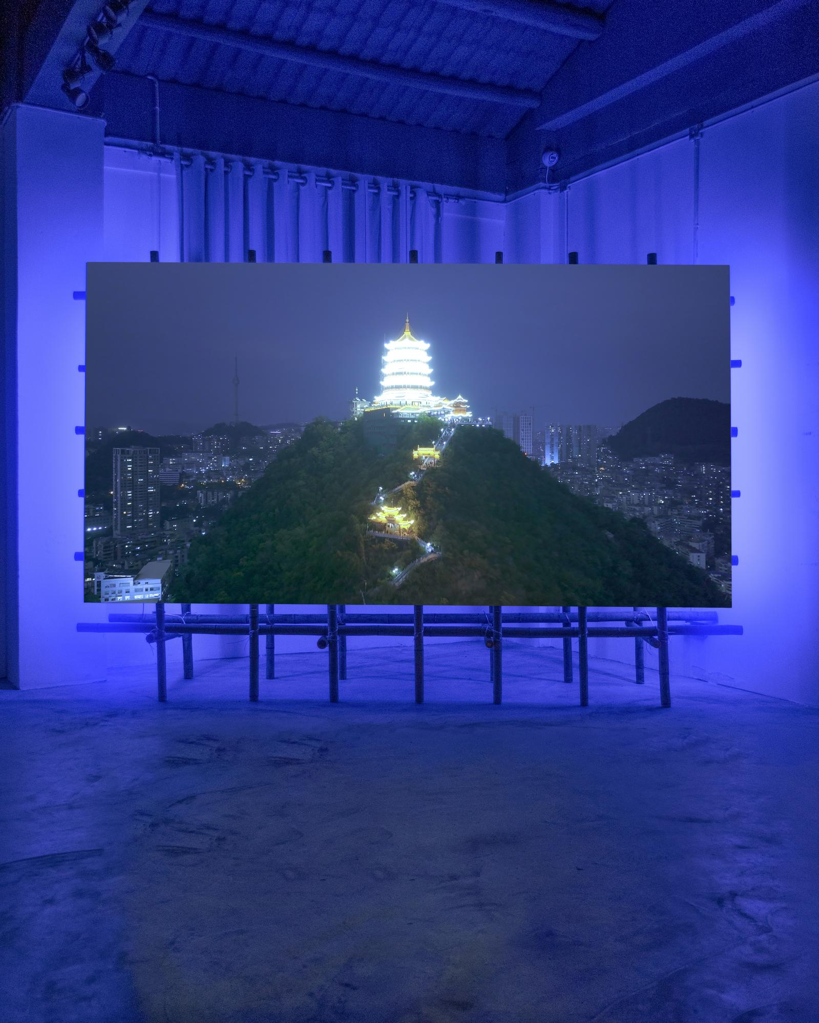 陈益青,《数据兄弟,太阳灯与景观背后的少数民族》,展览现场,抱朴FELT艺术空间,贵州凯里,2025