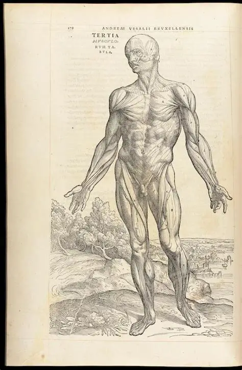 - 下图前后为维萨里之前的解剖图、维萨里《人体构造》插图
