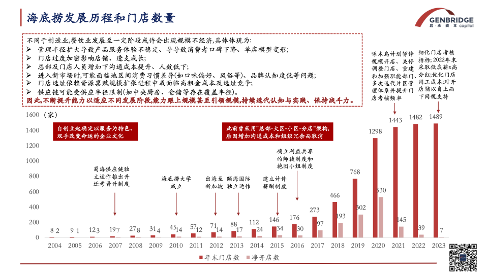 周期更替,大多数国内的餐饮品牌在时代洪流中折戟沉沙。作为31岁的餐饮老将,海底捞在经历了2020-2022年的“寒冬暗夜”之后,再度焕发生机。2023年以来,我们看到了海底捞更高频的产品和营销创新、更丰富的子品牌、更多元的业态。即便压力和挑战仍在,巨人仍在驶向新的征程。