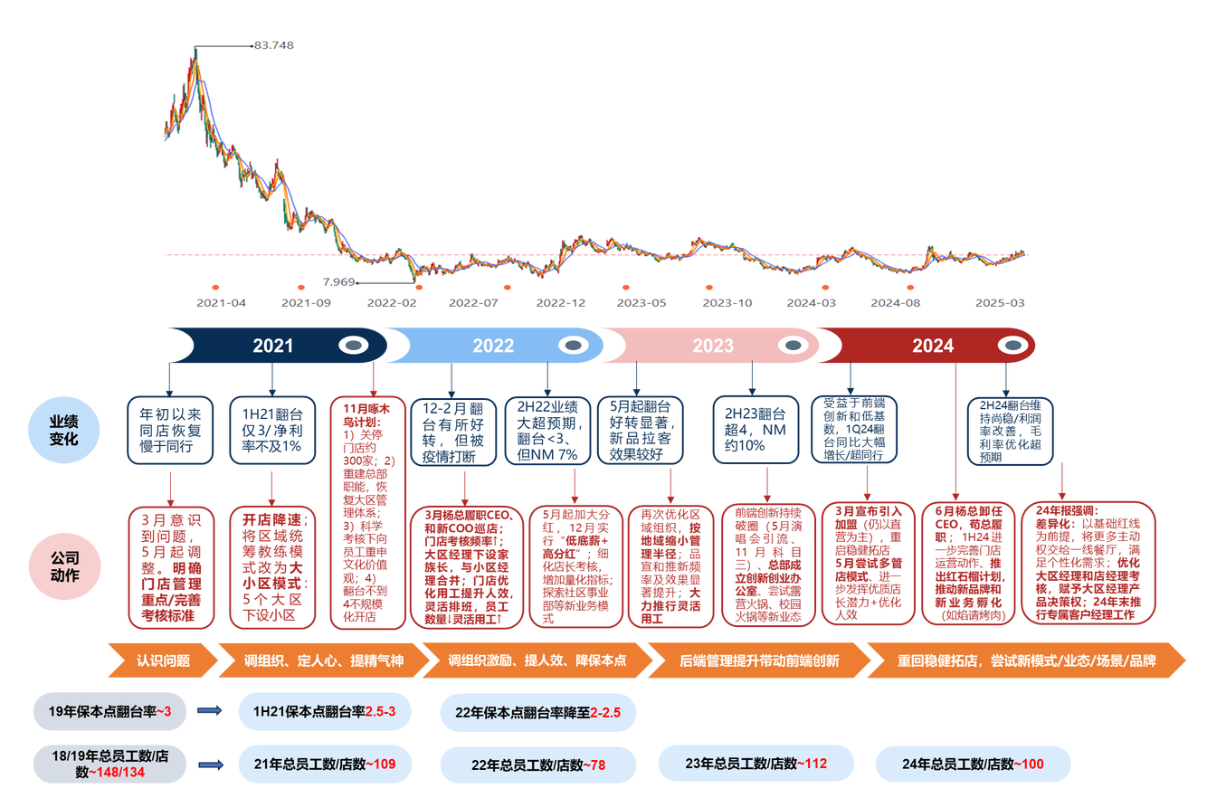 作为国内餐饮行业的尖子生,海底捞逆转局面的过程,展现了一个重服务的单店模型、一个高增长势能的组织、一个舆论风口的明星公司,在经营受挫之后,大象转身、自我修复的韧性和魄力。它走的每一步,都极具借鉴意义。