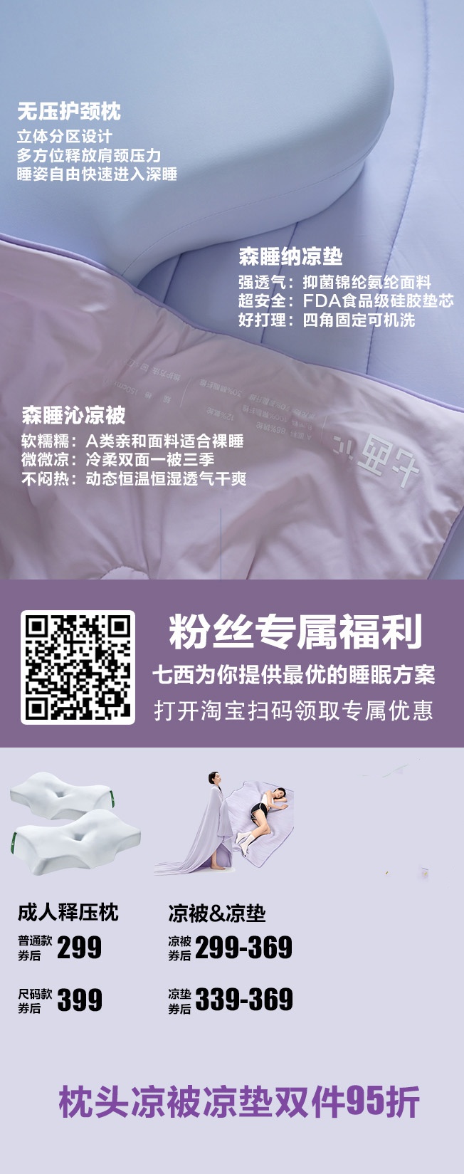 2、买双件凉被凉垫或者双件枕头还可以享受券后95折优惠