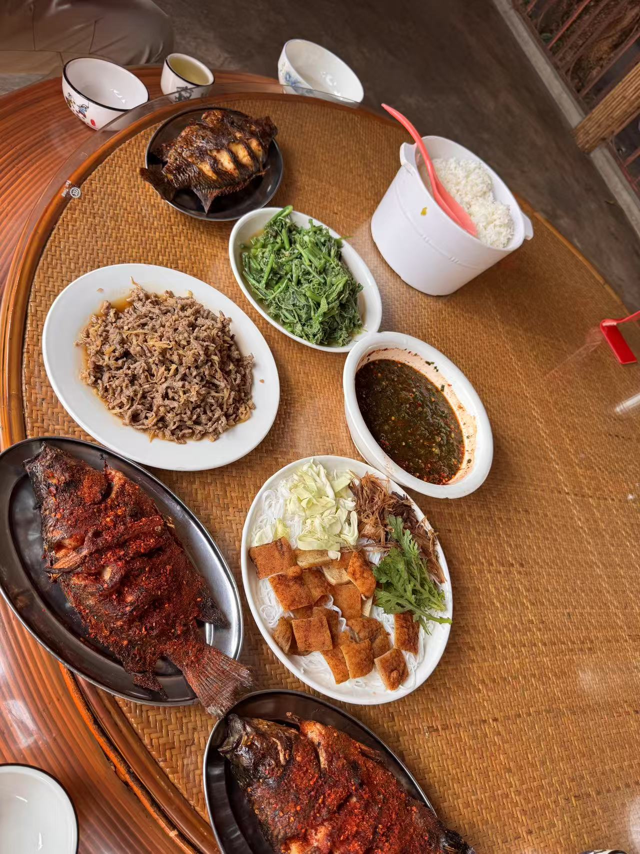 先是不期而遇的赶摆,再是700岁的巨大的大榕树,然后挑了个路过的咖啡庄园赏景喝咖啡,再然后,在民宿老板娘推荐的赧浒解决了午饭——这一路真的是轻松又愉快,我们的小车开过,整个峡谷里都是欢快的气息呢~