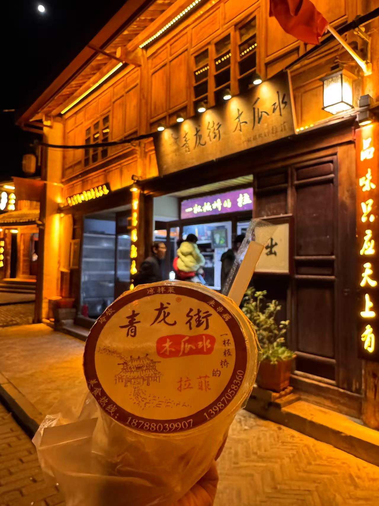 美好的体验始于一锅铜瓢牛肉——古驿道边经过无数行脚之人验证过的美食,夏天说这种食物就是我们自己的“米其林”。夜晚的青龙街被暖橙色的灯光映出别样的温暖,魁星楼、百年老茶铺、马掌铺……不长的小街上是满满的生活气息,难得的未受到“新型古镇商业街”千篇一律的模式侵袭,佛系的老板,悠闲的当地人——我们也像刚放学的小学生一样,买一杯木瓜水,沿着古街的石板路漫无目的的闲逛,在这个西南的小镇找到一种童年才有的踏实。