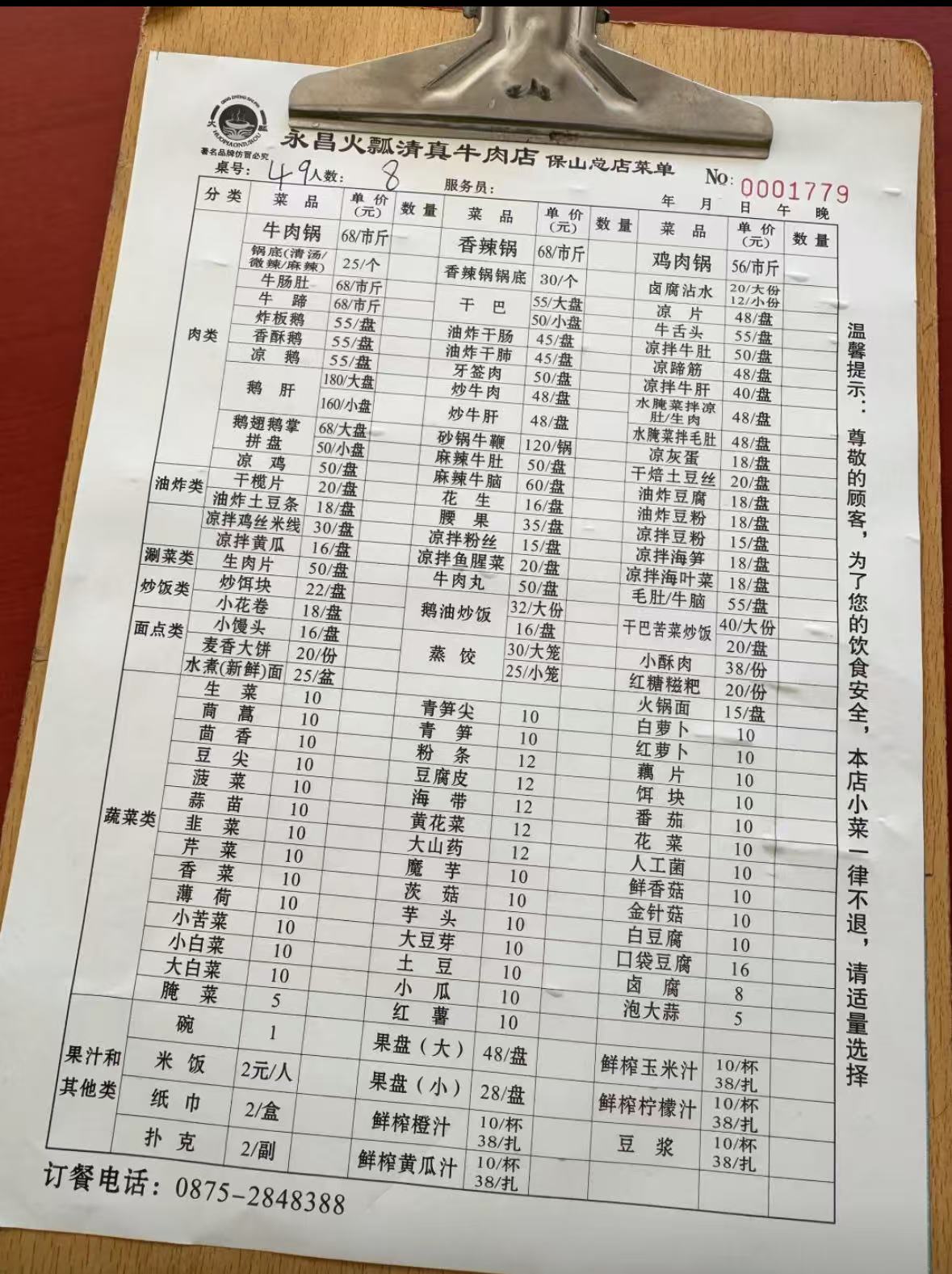 铜瓢牛肉居然没拍照啊,就找到了这个单子》》》》