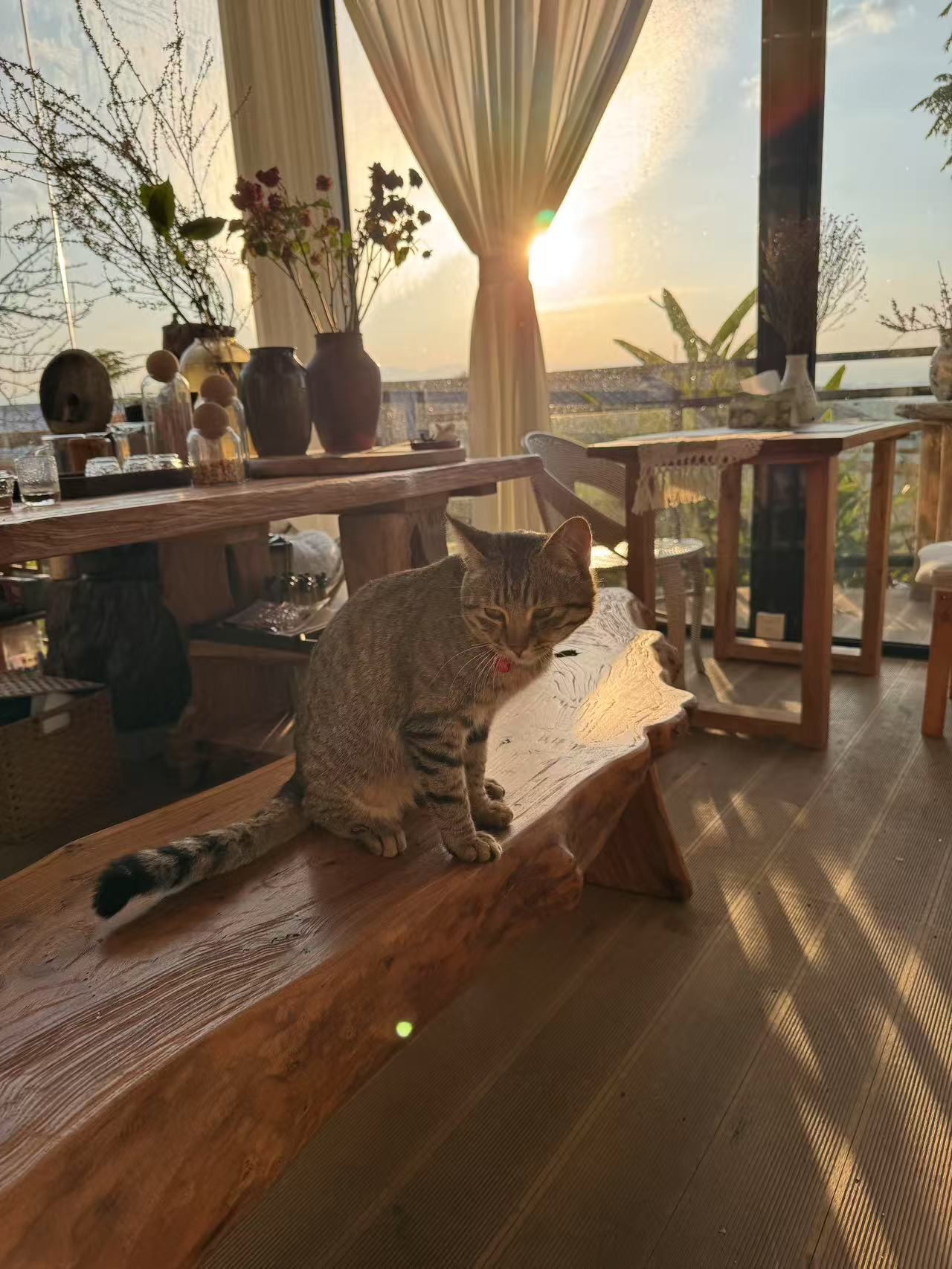 一夜无话,清晨是山间的暖阳和一顿饱餐——还有猫猫陪伴。离开怒江峡谷的一路与前一日是同程,只不过这时的我们在时间上更有余裕,能够走走停停——