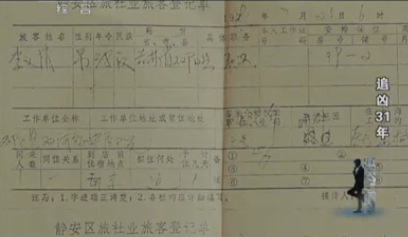 ▲“李义清”填写的住宿登记单