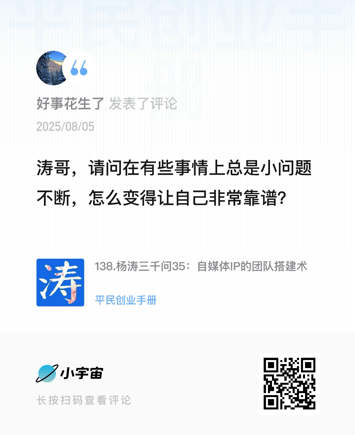 - 00:28 Q1:总在小问题上栽跟头,怎样才能变得靠谱?