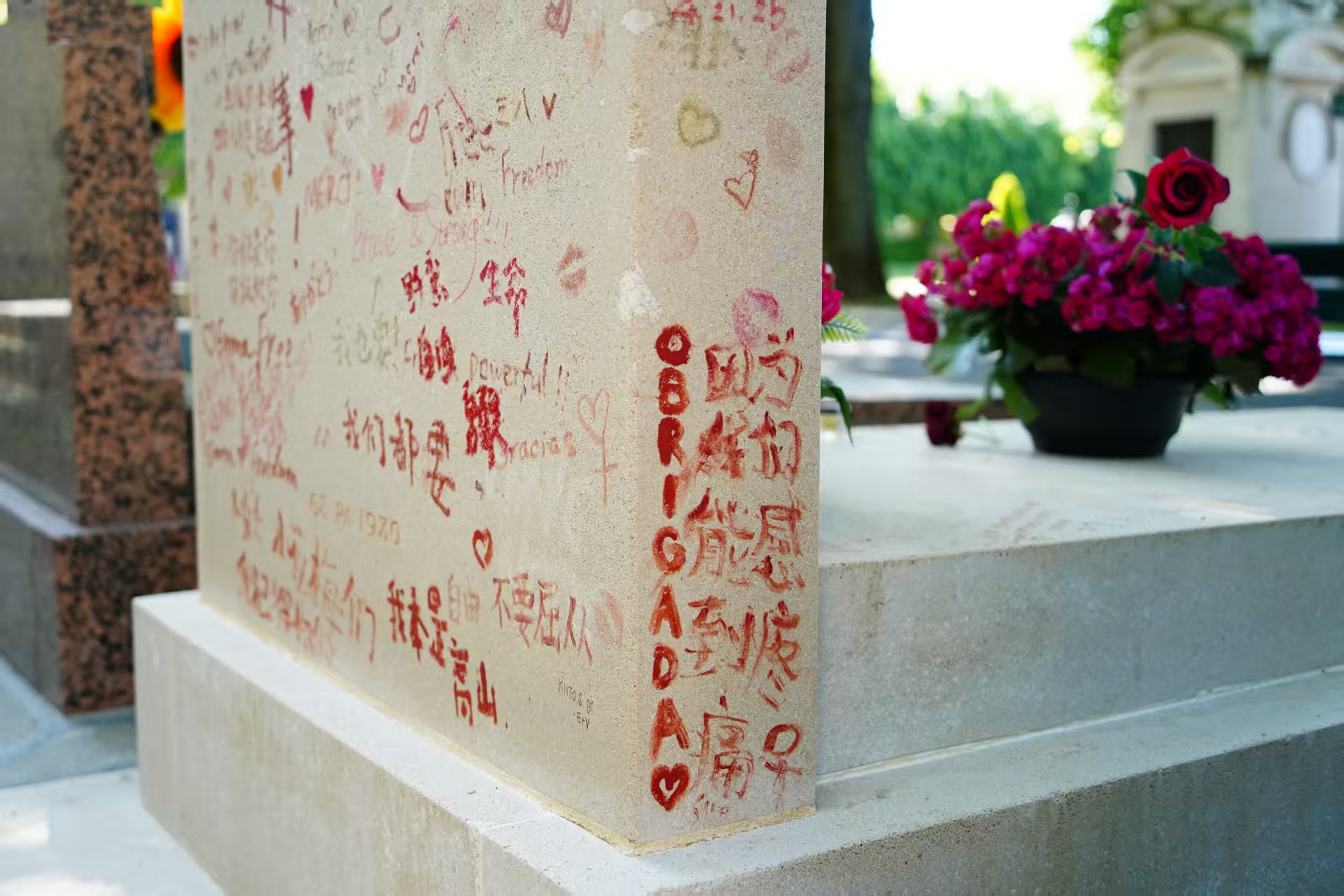 墓碑上用口红写满了文字