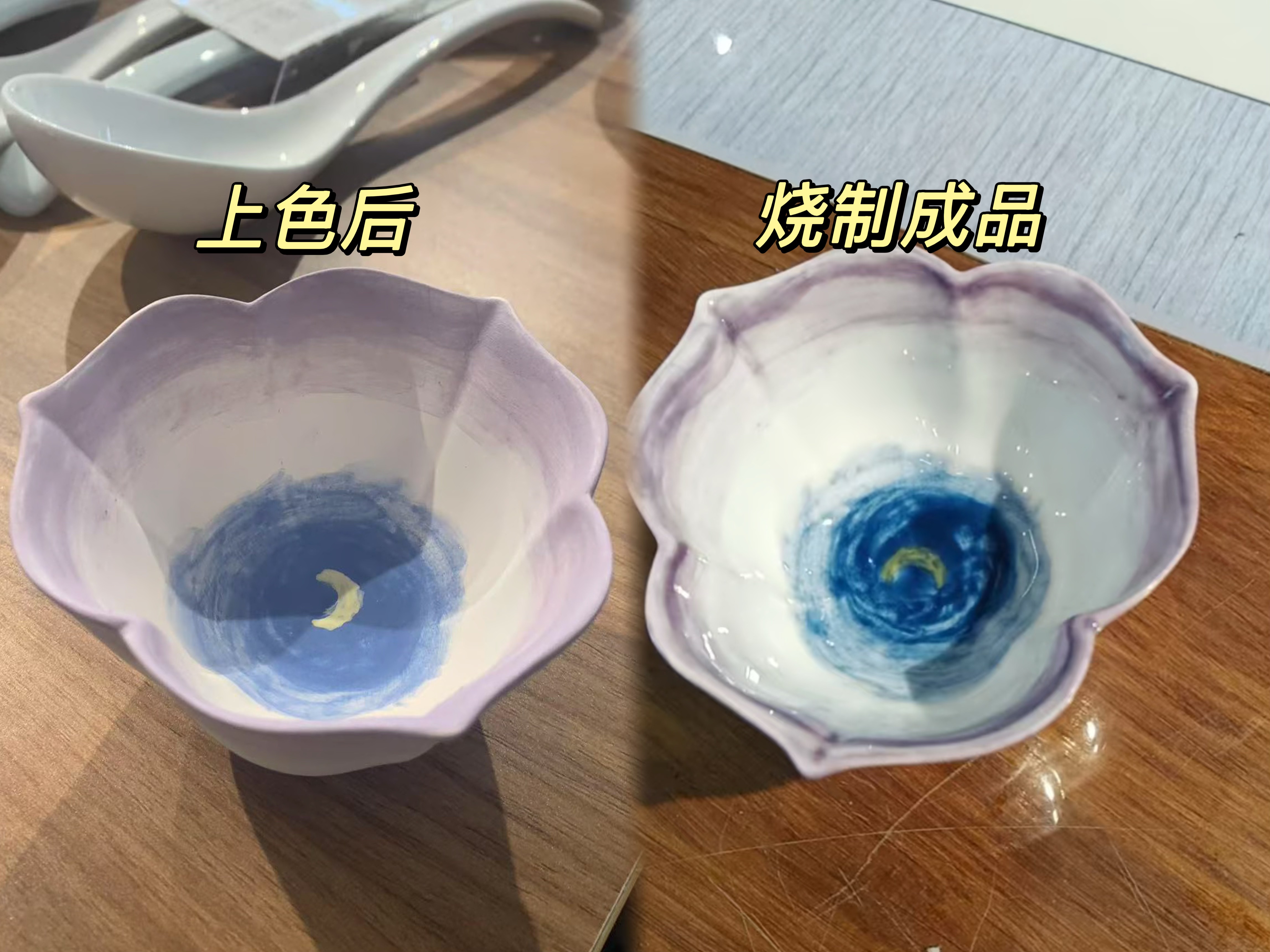· DIY体验:陶溪川陶艺店(画胚子+烧制邮寄,难度在于颜色均匀,成品超预期)。