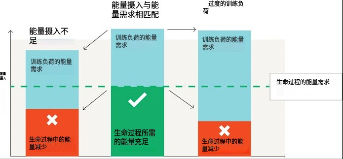 能量摄入与消耗之间的平衡、不足和过度训练三种状态