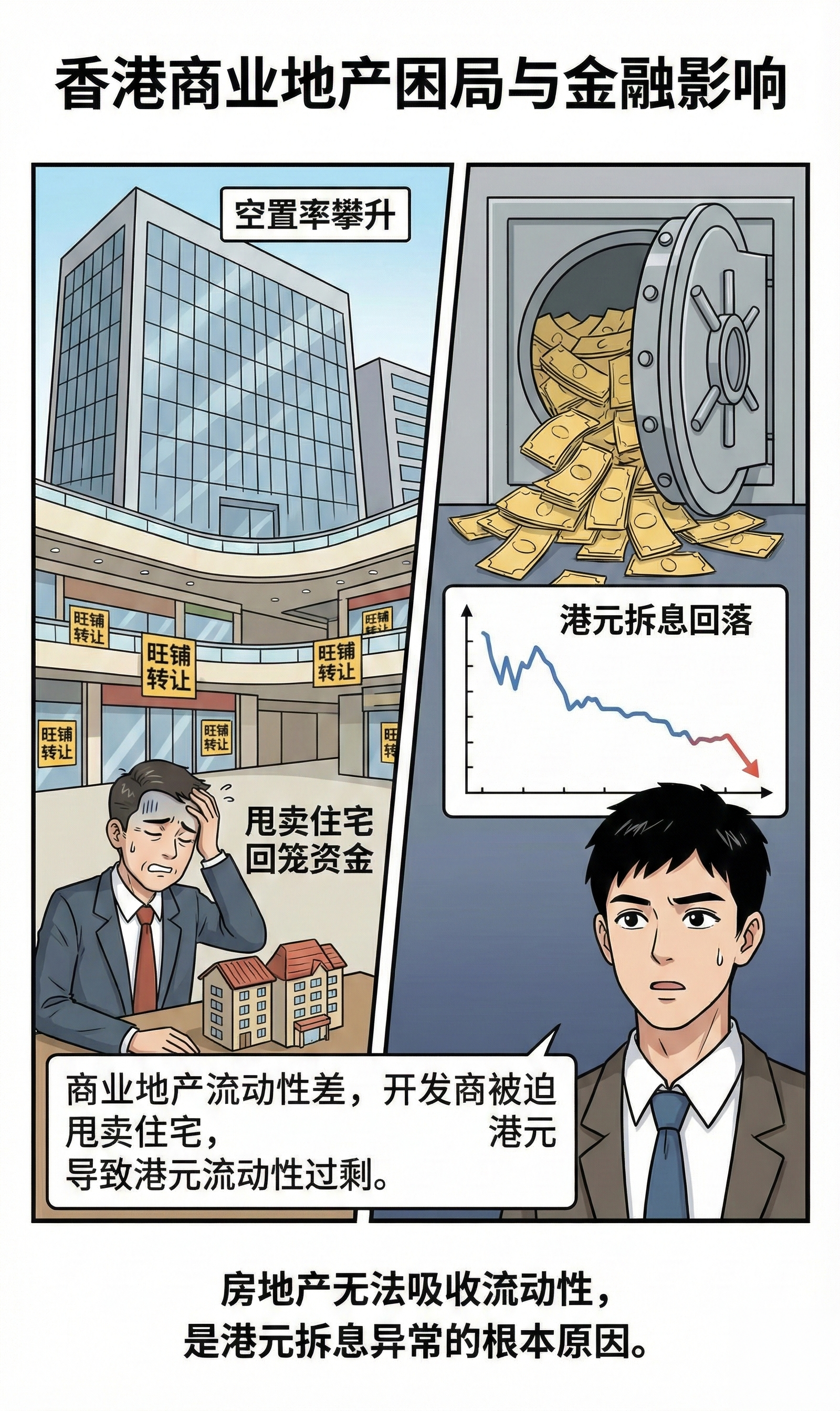 讨论了香港房地产市场的流动性问题,特别是商业地产的过剩和写字楼空置率上升的问题。分析了香港政府的人才引进政策对房地产市场的影响,以及这些政策对香港房地产市场流动性的潜在影响。