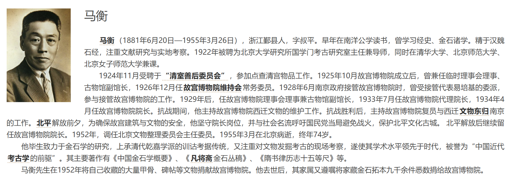 马衡先生介绍-来自于故宫官网