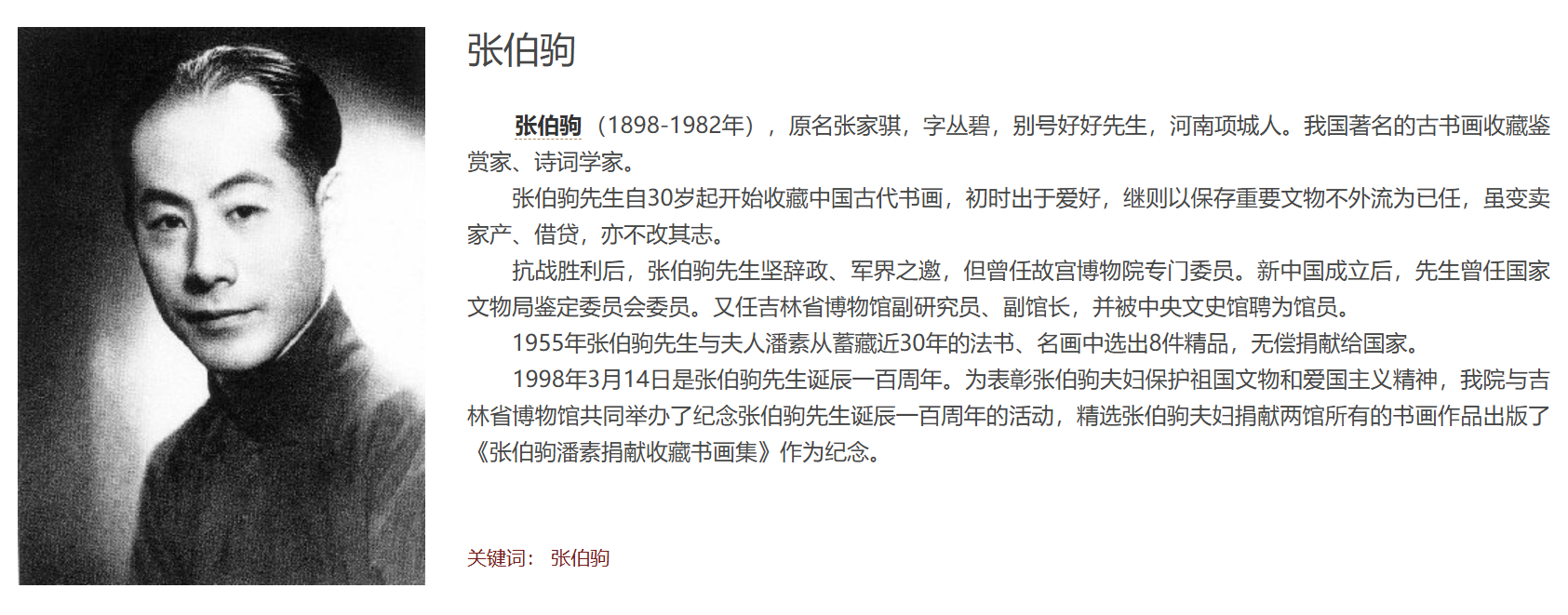 张伯驹先生介绍-来自故宫博物院官网