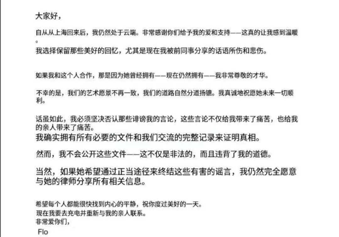 ○ Flo对于事件避重就轻的回应(已翻译)