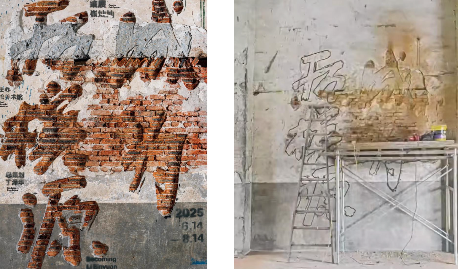 ▲ 何见平为展览设计的海报(右:过程图;左:海报)