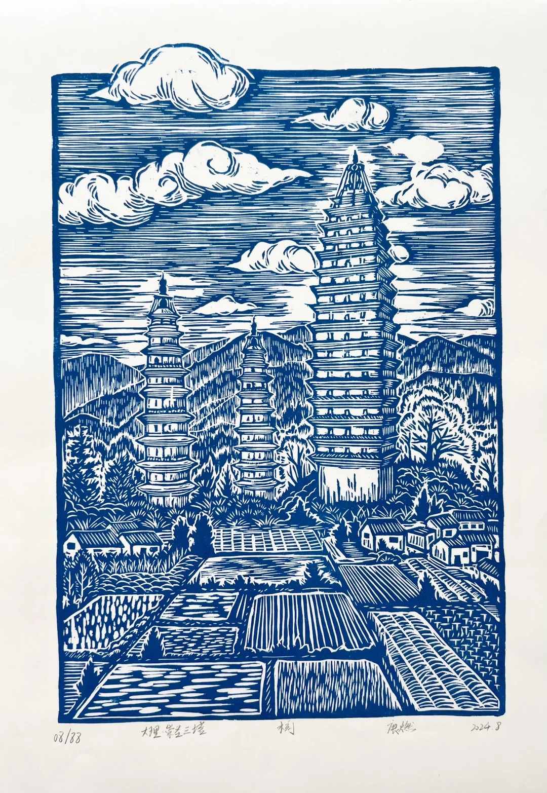 认识鹿燃是偶然也是必然:他在小红书上发布了三塔的版画,算法精准地推送给了我(一个位于三塔旁边小书店的老板)。于是我尝试联系寄售,收获了一系列让我感到惊喜的创作,逢人便说“我最近挖到一个宝藏小伙儿!”鹿燃也因这个契机开始他在大理店铺的寄售。