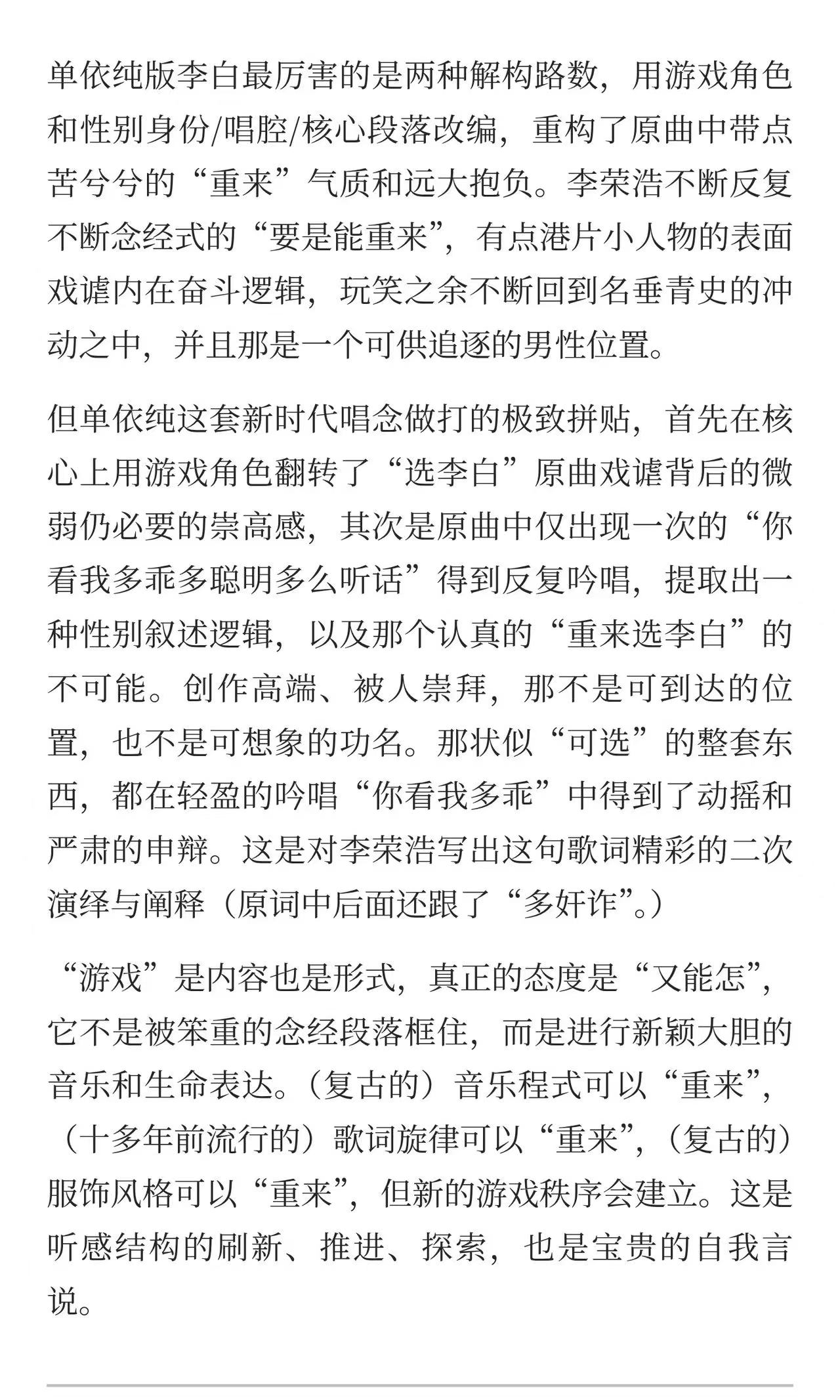 1:21:27 丢失了《李白》讨论,那就听一小段原曲吧!(补档:下方图片摘录了一段讨论的文字!)