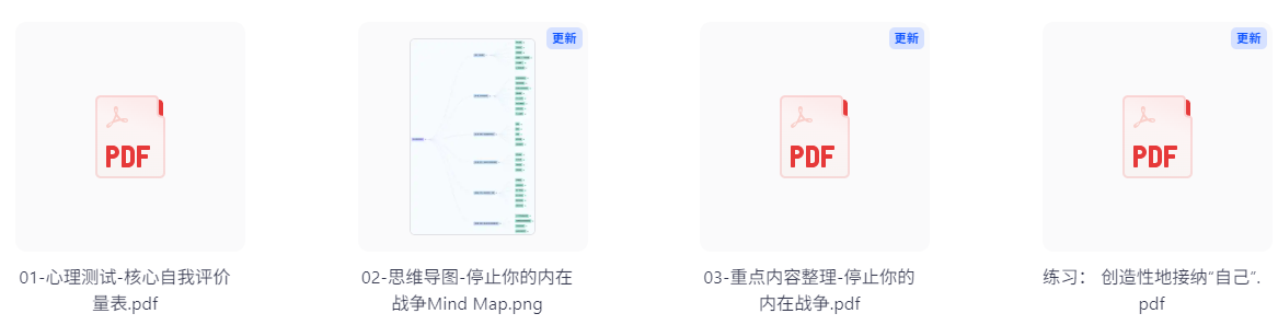 自我评价量表及说明、练习:创造性接纳自己以及本书的思维导图和本书的重点内容整理,链接如下,欢迎自取: