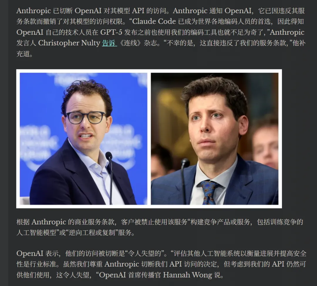 - (00:21) - 行业震动:为何 Anthropic 宣布切断对 OpenAI 的 API 供应?背后可能与 GPT-5 的开发有关。