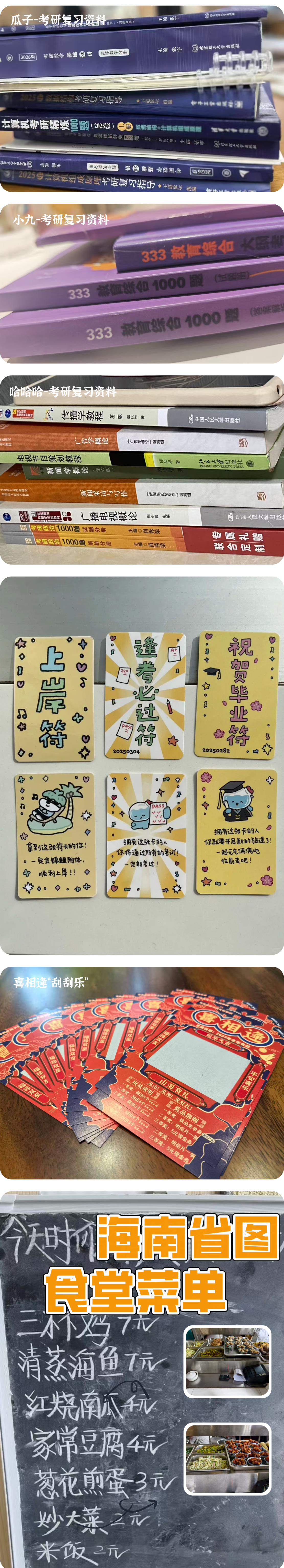 没想到在这个“18块钱就能待一天”的神奇空间里,我遇到了一群有趣的灵魂:从天津回海南备考的计算机系瓜子同学、为爱情跨越千里来海南考研的四川小九老师、想逃离海南却又离不开清补凉三件套的哈哈哈,还有化身“便衣暗访员”的图书馆工作人员老猫。