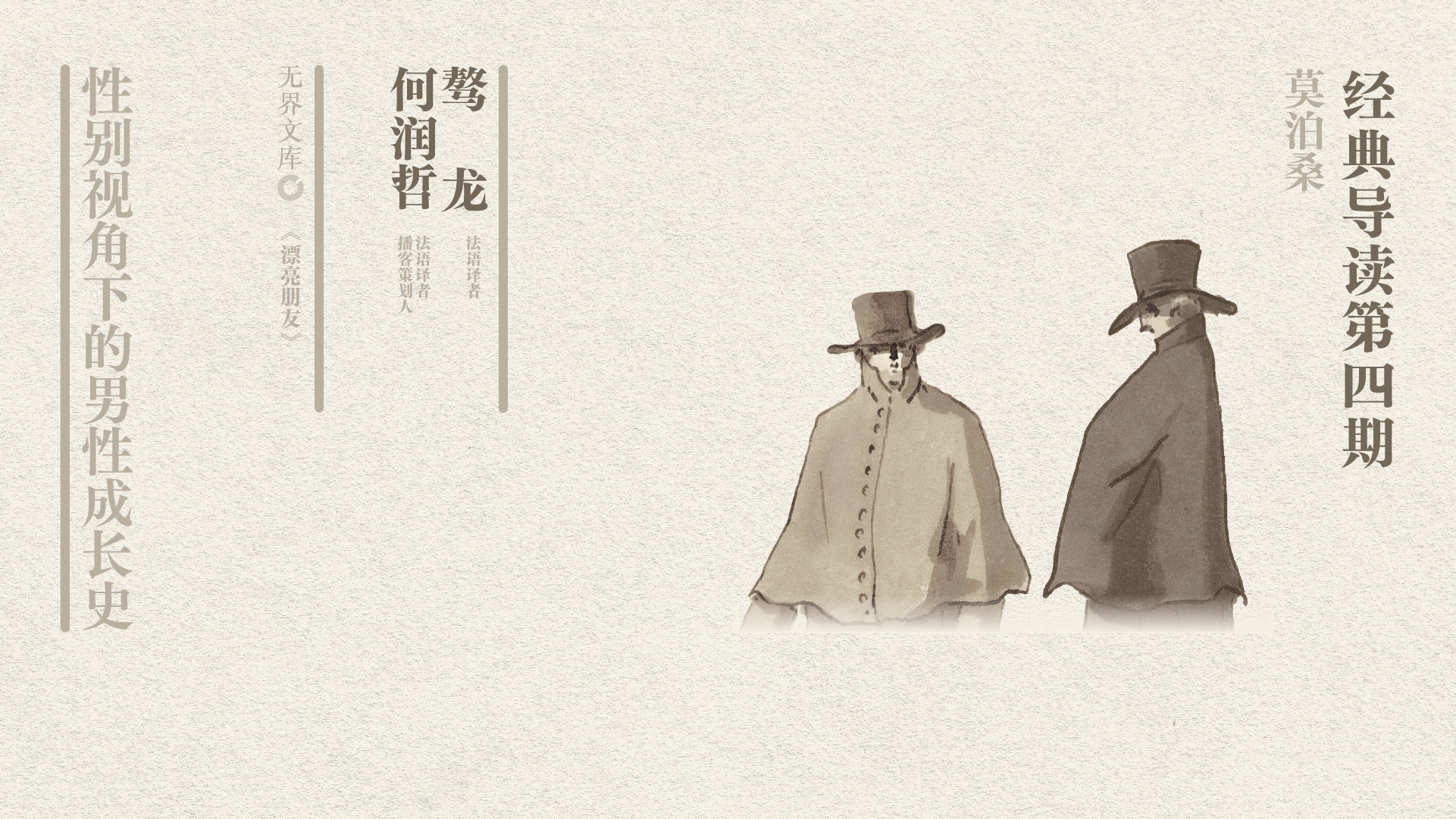 本期节目,我们特约两位法语译者骜龙与何润哲,将以“性别视角下的男性成长史“为题,一起共读莫泊桑的《漂亮朋友》,从性别视角来看“漂亮朋友”杜洛华带给我们怎样的阅读体验;分享在当下语境重读这部经典,会带给我们怎样的思考。