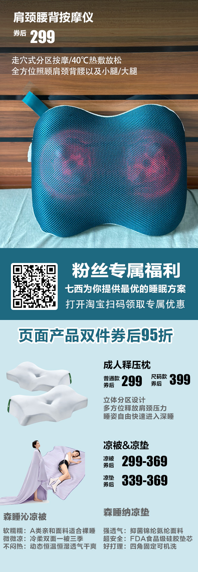 另外上次错过了他们家的凉被枕头的花卷们这次也可以关注一下,七西的床上产品对于睡眠都很有帮助。特别是枕头,睡过之后就不想换其他枕头了。人体工学设计对颈椎很友好,睡醒不会脖子酸痛落枕。