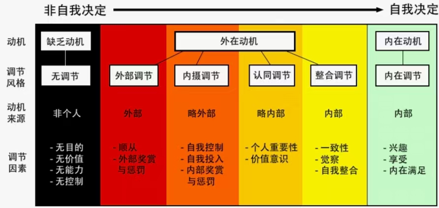 1)内部动机: 你做这件事是因为发自内心喜欢,觉得它有趣、有挑战性、能带来成就感或满足。2)外部动机: 你做这件事是为了得到外部的奖励或避免惩罚,比如金钱、表扬、分数、避免批评、完成任务。
