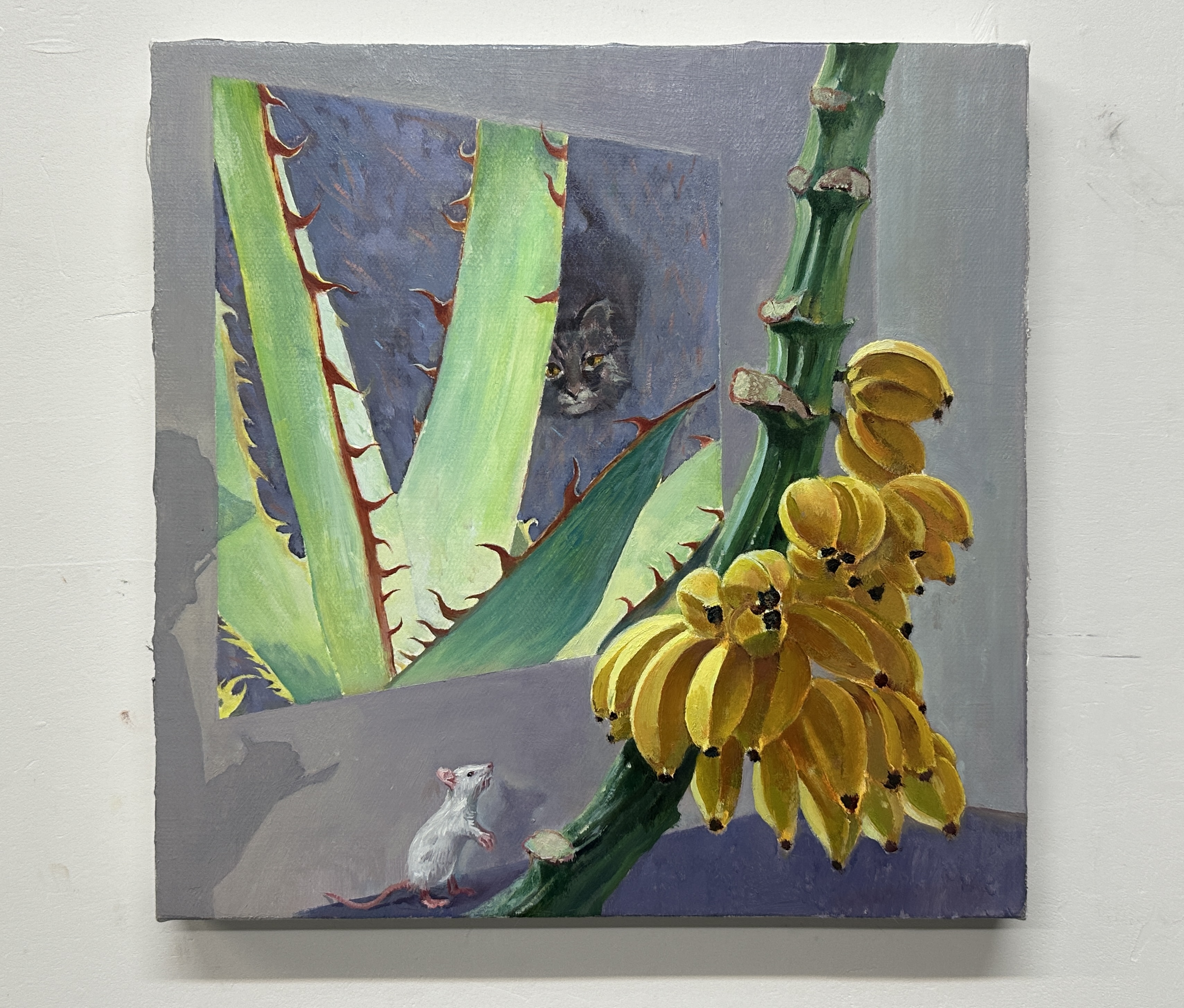 《猫鼠游戏》 30X30cm 木板油画 2025