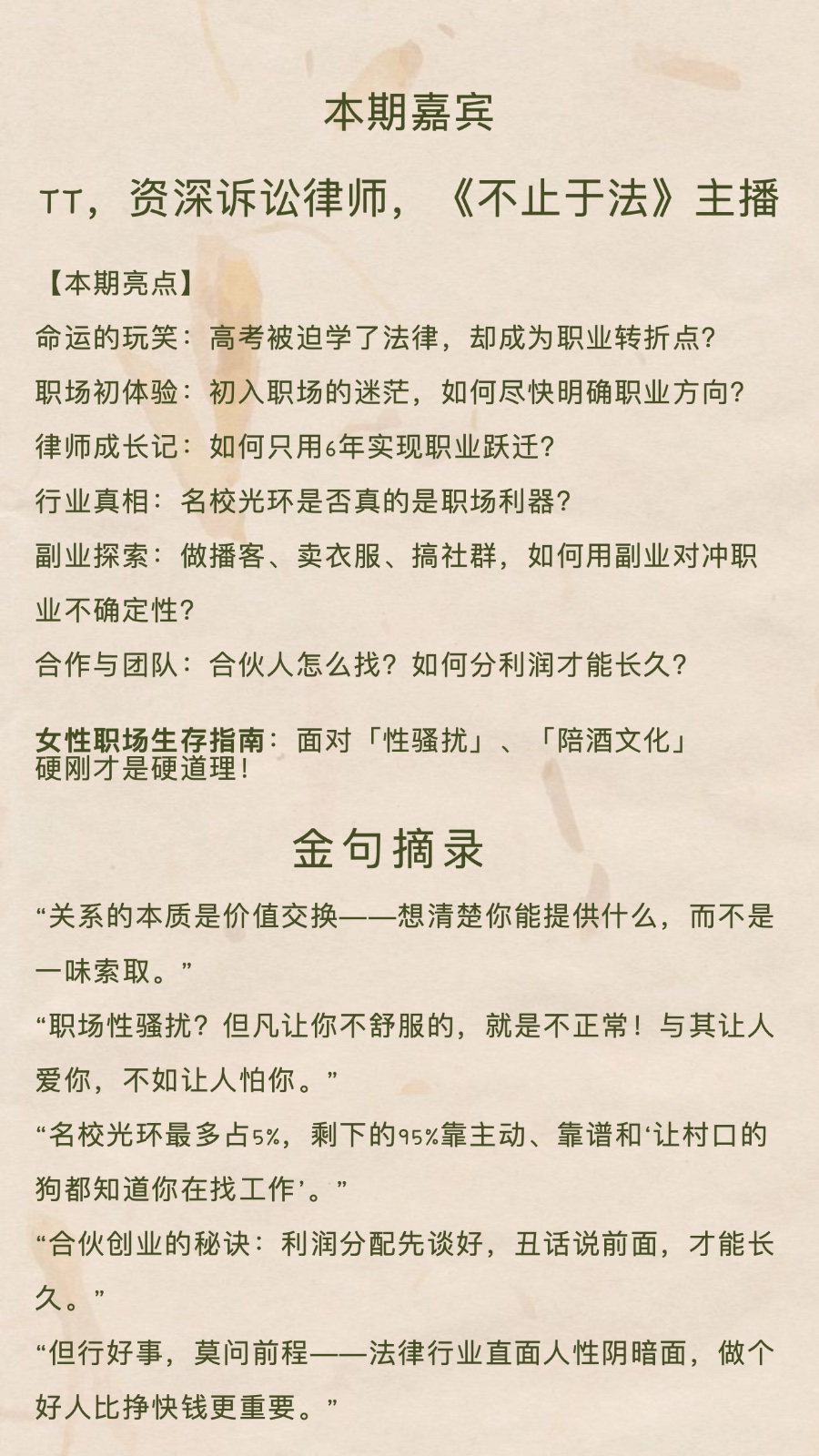 在录播客的现场,Tt律师给的震撼非常大,发现名校也要找工作,人生自己探索才有无限可能。还学会了分钱,分好钱,才能做更大!