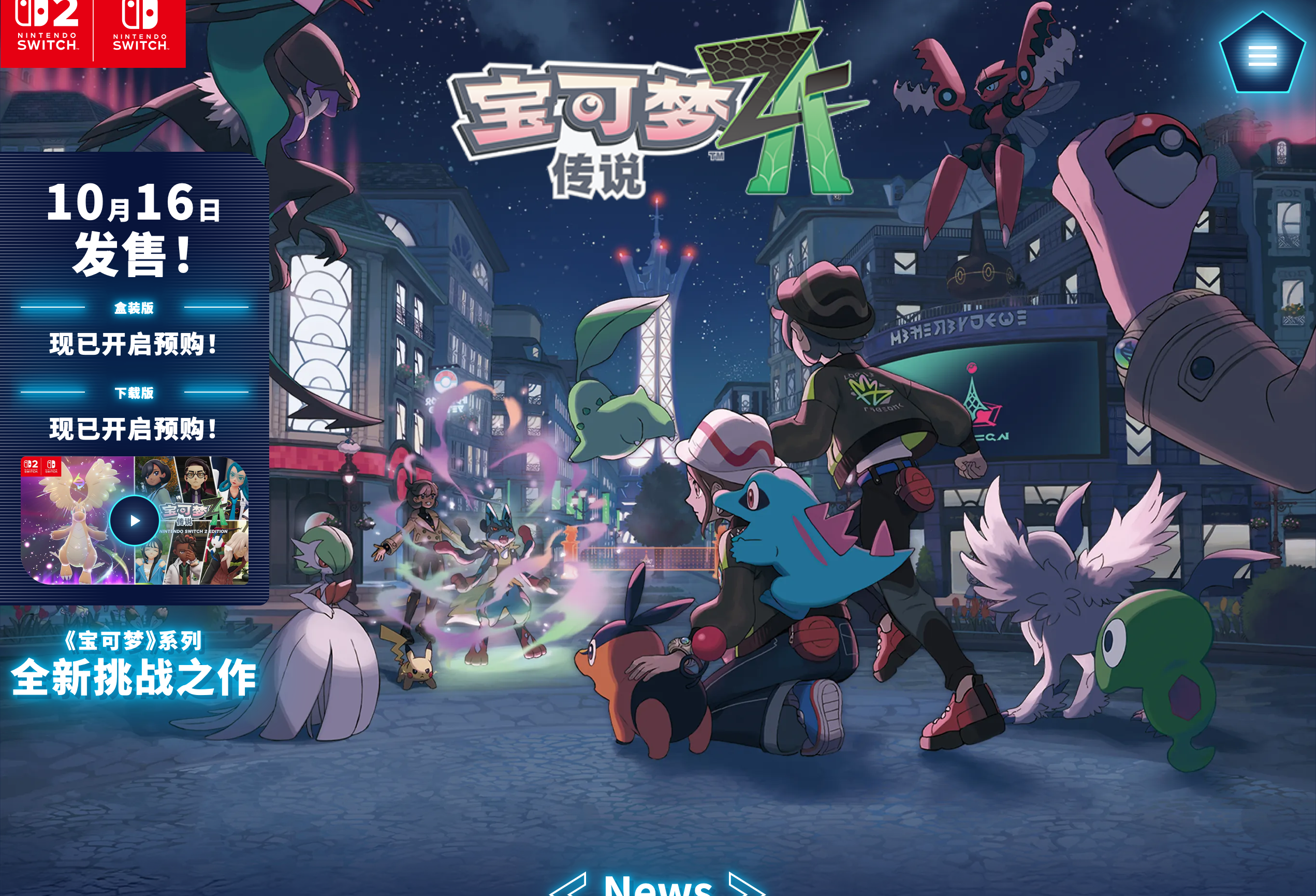 - 宝可梦公司宣布,备受期待的《宝可梦传说:Z-A》和《宝可梦传说:Z-A - Nintendo Switch 2版》将于2025年10月16日发售。预购将于6月5日开启。