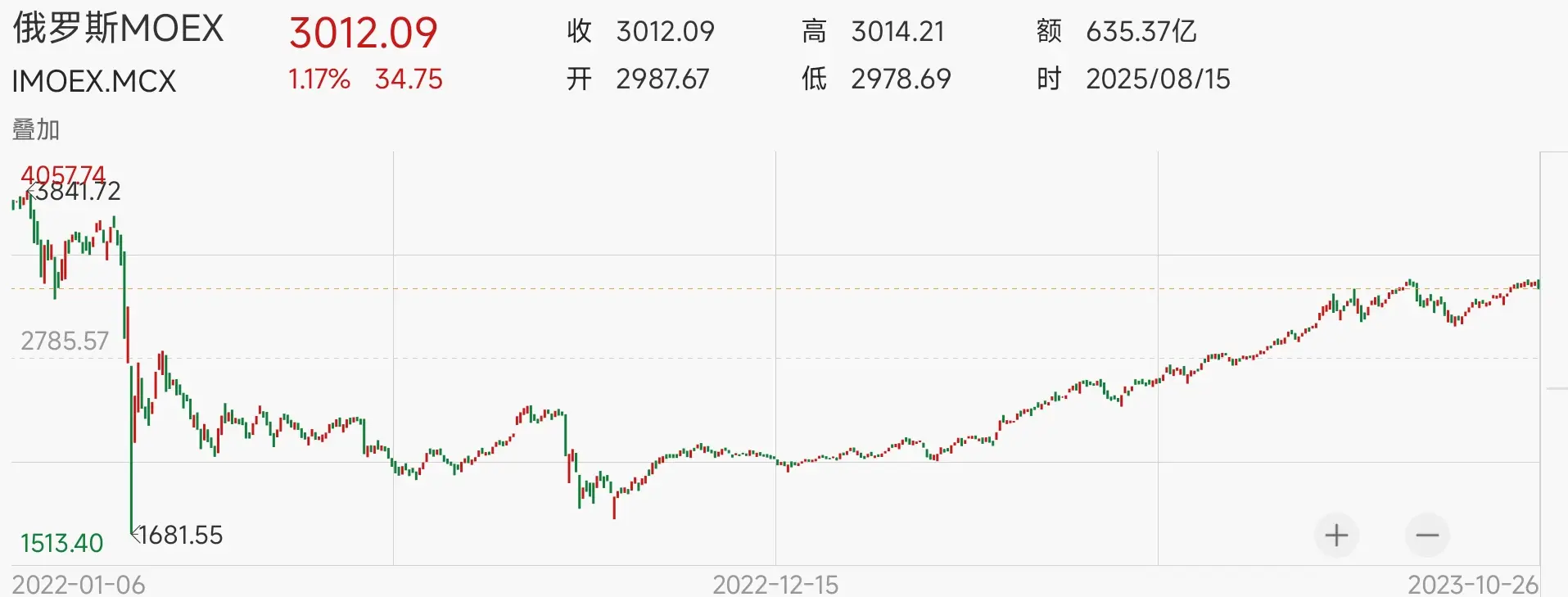 图一:俄罗斯市场 MOEX 指数,2022见底后一直涨