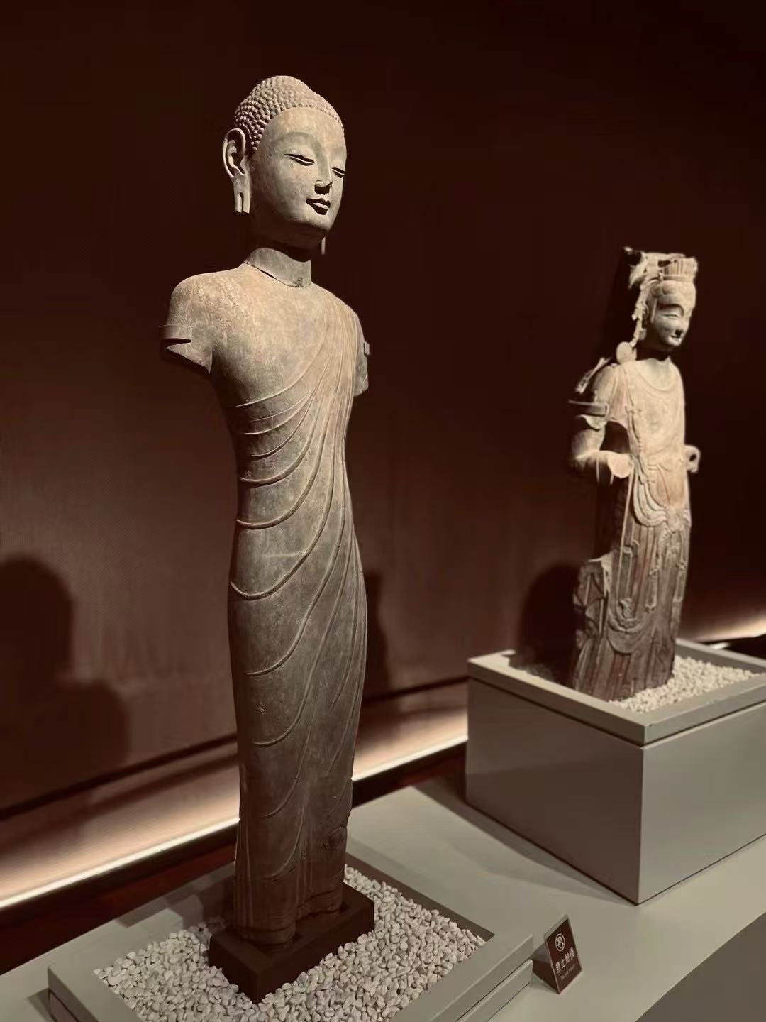 但是这次青州小逛有一偶得,龙兴寺。我对寺庙从没研究,都是随大部队参观听解说的流程。青州龙兴寺是在遗址重建的,就在驼山脚底下,免门票。我也是去之后才查的资料,在唐宋属于皇家御用的几大寺庙之一,青州博物馆展出的佛教造像,就是从龙兴寺遗址挖出来的,据说属于重大考古发现。估计对比云冈龙门的是这些🤣🤣
