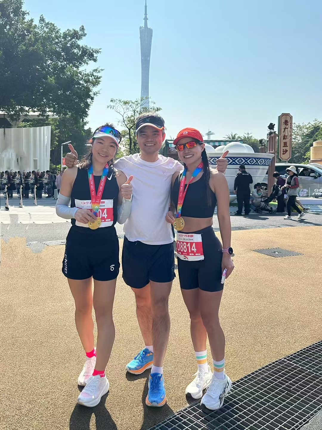 2024年我的人生第一场全程马拉松完赛后,我哥和我嫂子一起合影