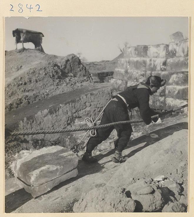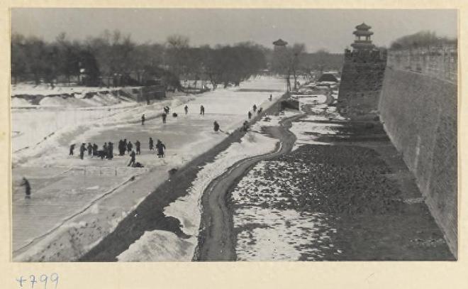 ►人们从城墙旁边的护城河切割冰块存储至夏季用于生活