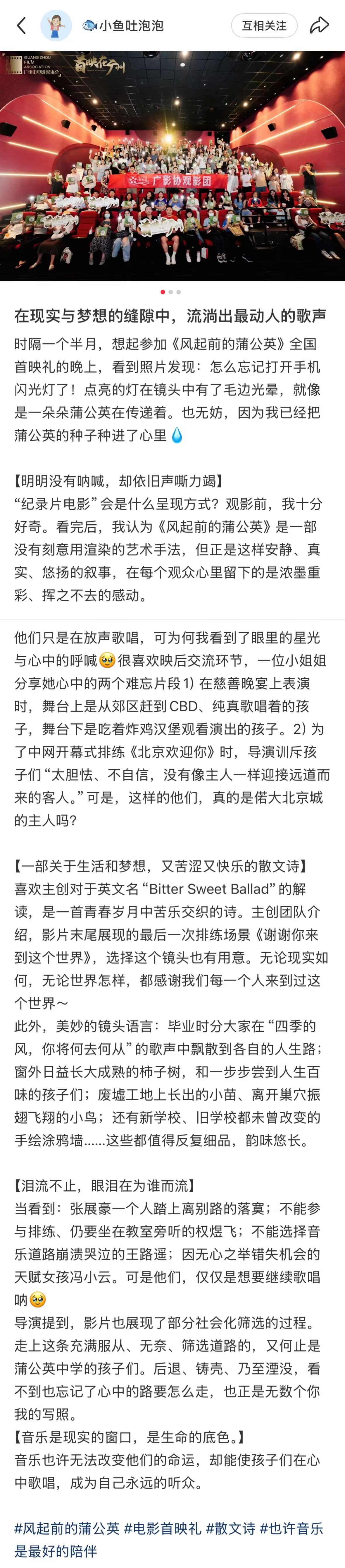 👏同样欢迎世界各地的友友都能将本期三连,把有关青春/歌唱/梦想/友情等感想留在评论区🌸 当然,如果有愿力有渠道也想在当地组织放映的话,那就太好了!我们愿意为大家对接相关工作人员!一起成为传播美好种子的暖风吧🦋