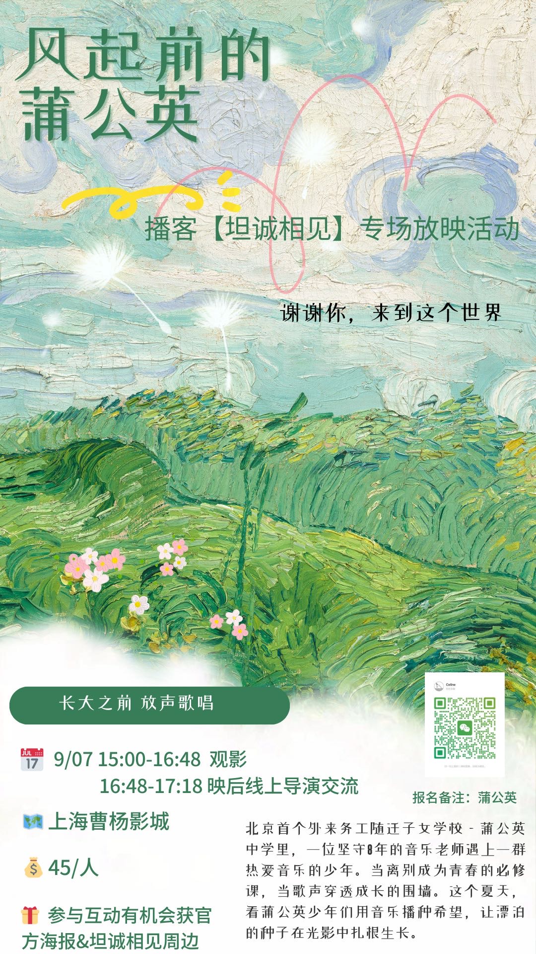 ✨纪录片《风起前的蒲公英》&播客坦诚相见线下观影✨