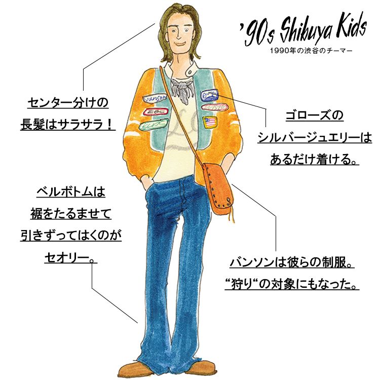 - 渋カジ:涉谷休闲风 shibuya casual拼接起来的和式英语,80年代后期至90年代前期风靡一时的时尚风潮。以涩谷聚集的年轻人作为发信源,独特的美式休闲风格在全国范围内迅速扩散开来