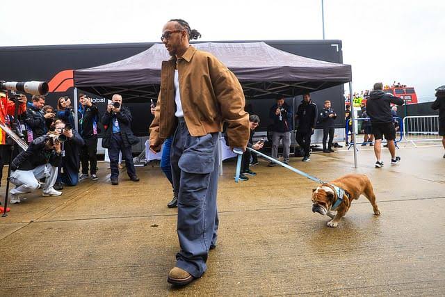 英国银石赛道,汉密尔顿选手会带着他的爱犬(Roscoe)入场。