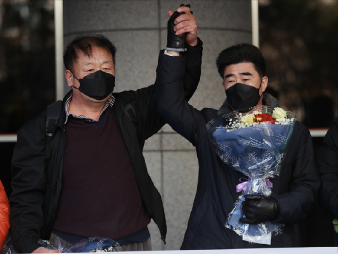 上诉成功被宣布无罪的崔仁哲(左)和张东益(右)