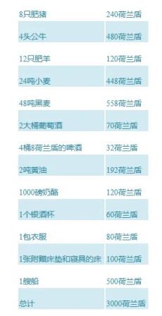 17世纪荷兰郁金香泡沫时期3000盾的可能购买力: