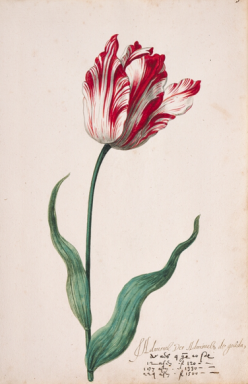 17 世纪郁金香画谱中的 Semper Augustus 水彩页: